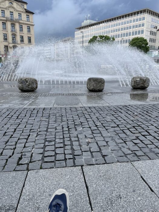 Shoppen Nach der Arbeit 45 Minuten Aufenthalt am Stachus und es ist nicht immer ganz klar, ob das Wasser vom Brunnen rüber oder aus den dunklen Wolken runter weht.