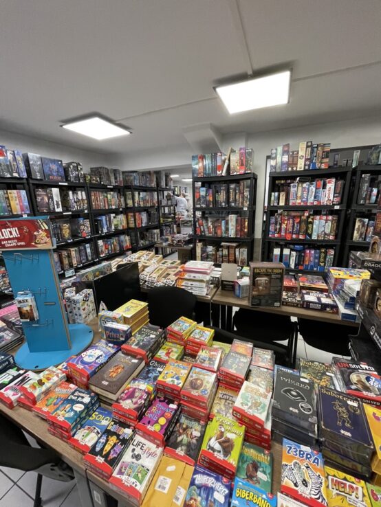 Bin auf der Suche nach einem Geburtstagsgeschenk. Ein Brettspiel muss her. Bei unserem letzten Berlinbesuch war ich fasziniert vom Brettspielladen in der Eberswalder Straße und hab mich gefragt, warum es so was nicht in München gibt. Ich bin also in Ermangelung eines ähnlichen Fachgeschäftes schon fast auf dem Weg zum Obletter, einem bunten Spielwarengemischtladen, der neben bunten Barbiepuppen und WWII-Revell-Panzerbastelsets halt auch Brettspiele hat, als mich eine Kollegin auf Funtainment hinweist. Gibt es seit 1996 (!) in München, hat ein überwältigendes Sortiment an Board, Karten, Tabletops, Mangas und Konsolenspielen auf vier separaten Verkaufsflächen. Alles ein bisschen unscheinbar im Hinterhof in der unglamourösen Landwehrstraße. Auch nach fast 25 Jahren immer noch mal neue Ecken in der Stadt kennenlernen!